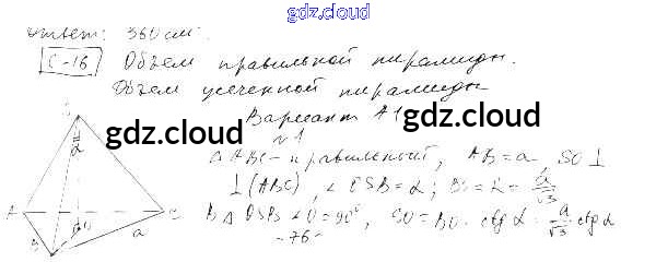 СР-16. Варианты Самостоятельные работы по Геометрии 11 класс Самостоятельные и контрольные работы Ершова    Илекса
