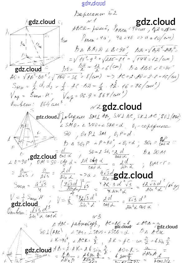 КР-4. Варианты Контрольные работы по Геометрии 11 класс Самостоятельные и контрольные работы Ершова    Илекса