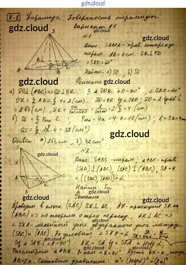 КР-8. Варианты Контрольные работы по Геометрии 11 класс Самостоятельные и контрольные работы Ершова    Илекса