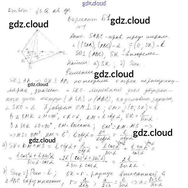 Ответ на задание Б1 Самостоятельные и контрольные работы Геометрия  за 11 (одиннадцатый) класс Ершова, Голобородько   2004