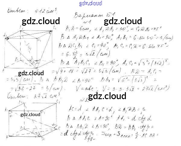 Ответ на задание Б1 Самостоятельные и контрольные работы Геометрия  за 11 (одиннадцатый) класс Ершова, Голобородько   2004
