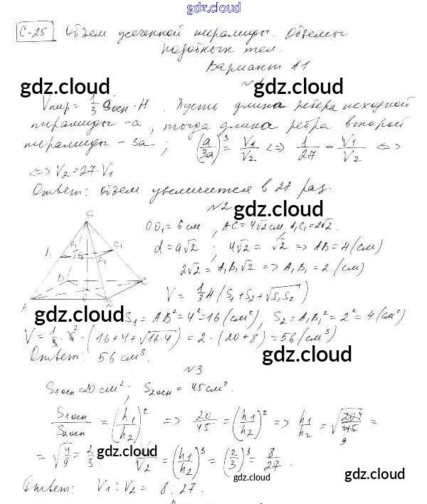 СР-25. Варианты Самостоятельные работы по Геометрии 11 класс Самостоятельные и контрольные работы Ершова    Илекса