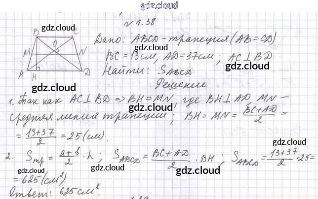 Ответ на задание 1.38 Учебник Геометрия  за 11 (одиннадцатый) класс Мерзляк, Номировский, Полонский, Якир Алгоритм успеха Базовый уровень 2019
