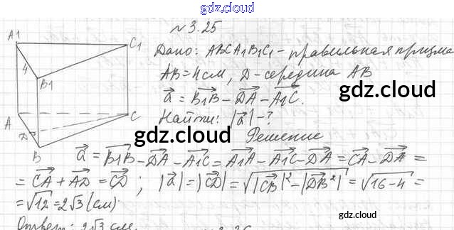 Ответ на задание 3.25 Учебник Геометрия  за 11 (одиннадцатый) класс Мерзляк, Номировский, Полонский, Якир Алгоритм успеха Базовый уровень 2019