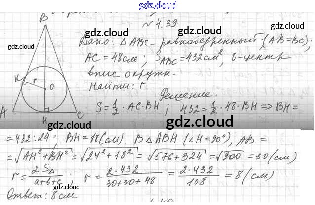 Ответ на задание 4.39 Учебник Геометрия  за 11 (одиннадцатый) класс Мерзляк, Номировский, Полонский, Якир Алгоритм успеха Базовый уровень 2019