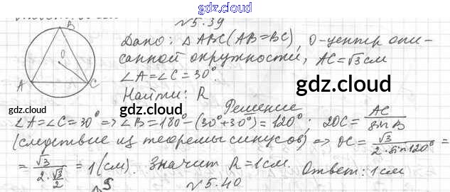 Ответ на задание 5.39 Учебник Геометрия  за 11 (одиннадцатый) класс Мерзляк, Номировский, Полонский, Якир Алгоритм успеха Базовый уровень 2019