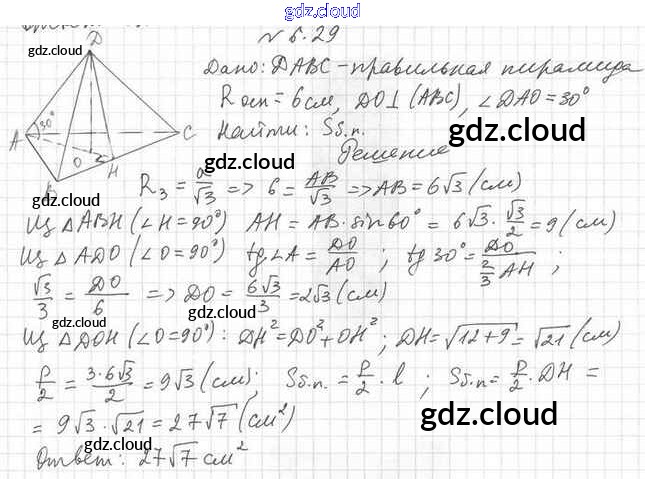 Ответ на задание 6.29 Учебник Геометрия  за 11 (одиннадцатый) класс Мерзляк, Номировский, Полонский, Якир Алгоритм успеха Базовый уровень 2019