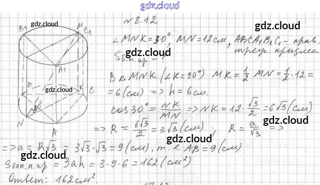 Ответ на задание 8.12 Учебник Геометрия  за 11 (одиннадцатый) класс Мерзляк, Номировский, Полонский, Якир Алгоритм успеха Базовый уровень 2019