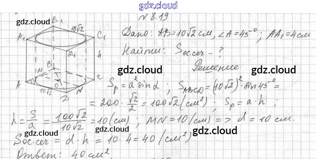 Ответ на задание 8.19 Учебник Геометрия  за 11 (одиннадцатый) класс Мерзляк, Номировский, Полонский, Якир Алгоритм успеха Базовый уровень 2019