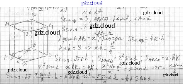 Ответ на задание 8.27 Учебник Геометрия  за 11 (одиннадцатый) класс Мерзляк, Номировский, Полонский, Якир Алгоритм успеха Базовый уровень 2019