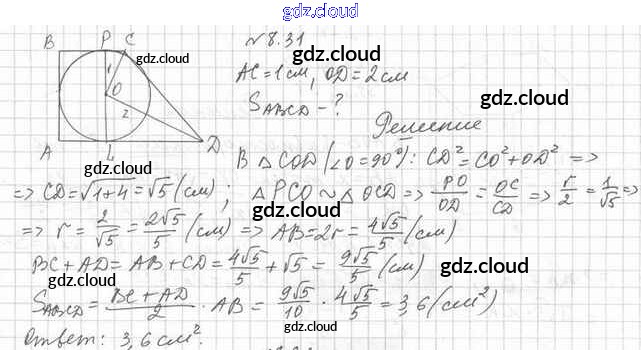 Ответ на задание 8.31 Учебник Геометрия  за 11 (одиннадцатый) класс Мерзляк, Номировский, Полонский, Якир Алгоритм успеха Базовый уровень 2019