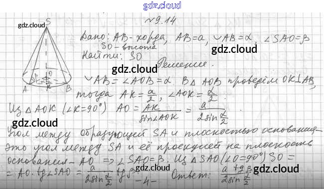 Ответ на задание 9.14 Учебник Геометрия  за 11 (одиннадцатый) класс Мерзляк, Номировский, Полонский, Якир Алгоритм успеха Базовый уровень 2019