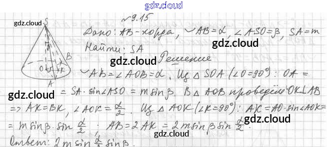 Ответ на задание 9.15 Учебник Геометрия  за 11 (одиннадцатый) класс Мерзляк, Номировский, Полонский, Якир Алгоритм успеха Базовый уровень 2019