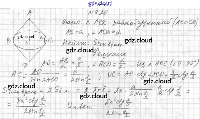 Ответ на задание 9.20 Учебник Геометрия  за 11 (одиннадцатый) класс Мерзляк, Номировский, Полонский, Якир Алгоритм успеха Базовый уровень 2019