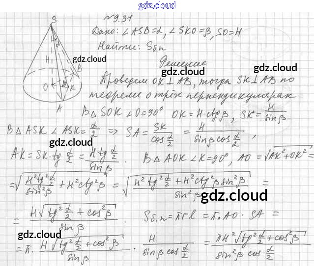 Ответ на задание 9.31 Учебник Геометрия  за 11 (одиннадцатый) класс Мерзляк, Номировский, Полонский, Якир Алгоритм успеха Базовый уровень 2019