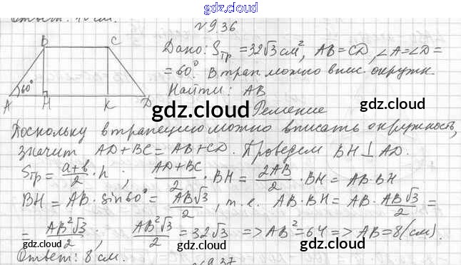 Ответ на задание 9.36 Учебник Геометрия  за 11 (одиннадцатый) класс Мерзляк, Номировский, Полонский, Якир Алгоритм успеха Базовый уровень 2019