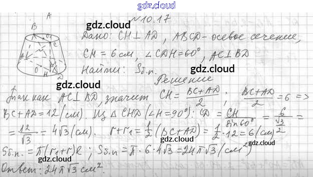 Ответ на задание 10.17 Учебник Геометрия  за 11 (одиннадцатый) класс Мерзляк, Номировский, Полонский, Якир Алгоритм успеха Базовый уровень 2019