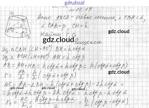 Ответ на задание 10.19 Учебник Геометрия  за 11 (одиннадцатый) класс Мерзляк, Номировский, Полонский, Якир Алгоритм успеха Базовый уровень 2019