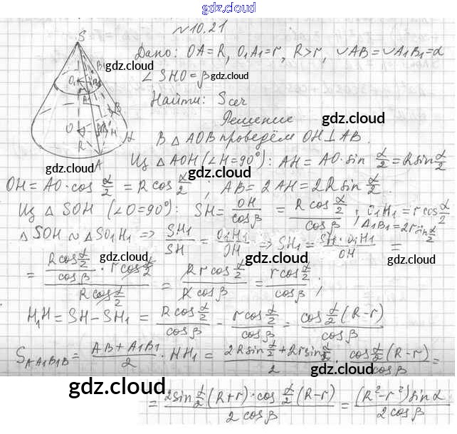 Ответ на задание 10.21 Учебник Геометрия  за 11 (одиннадцатый) класс Мерзляк, Номировский, Полонский, Якир Алгоритм успеха Базовый уровень 2019