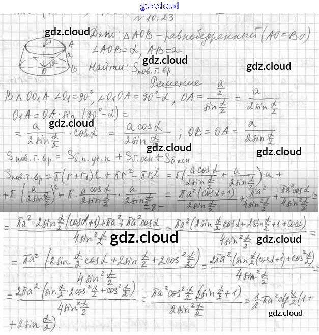 Ответ на задание 10.23 Учебник Геометрия  за 11 (одиннадцатый) класс Мерзляк, Номировский, Полонский, Якир Алгоритм успеха Базовый уровень 2019