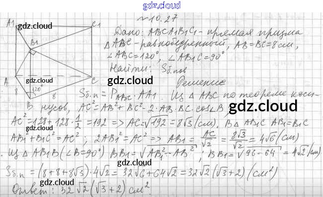 Ответ на задание 10.27 Учебник Геометрия  за 11 (одиннадцатый) класс Мерзляк, Номировский, Полонский, Якир Алгоритм успеха Базовый уровень 2019