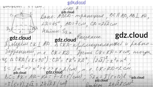 Ответ на задание 10.7 Учебник Геометрия  за 11 (одиннадцатый) класс Мерзляк, Номировский, Полонский, Якир Алгоритм успеха Базовый уровень 2019