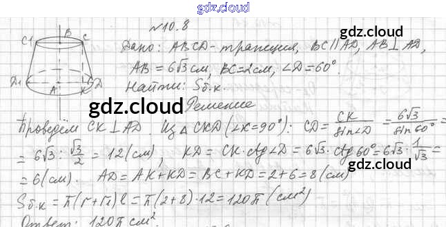 Ответ на задание 10.8 Учебник Геометрия  за 11 (одиннадцатый) класс Мерзляк, Номировский, Полонский, Якир Алгоритм успеха Базовый уровень 2019