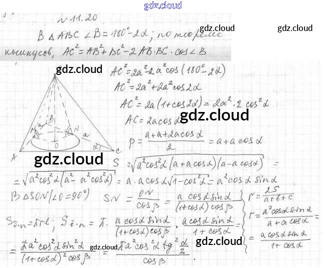 Ответ на задание 11.20 Учебник Геометрия  за 11 (одиннадцатый) класс Мерзляк, Номировский, Полонский, Якир Алгоритм успеха Базовый уровень 2019