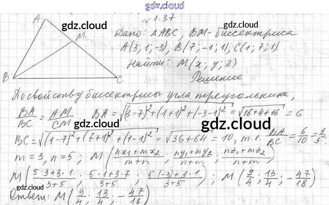 Ответ на задание 1.37 Учебник Геометрия  за 11 (одиннадцатый) класс Мерзляк, Номировский, Поляков Алгоритм успеха Углубленный уровень 2019