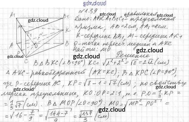 Ответ на задание 1.39 Учебник Геометрия  за 11 (одиннадцатый) класс Мерзляк, Номировский, Поляков Алгоритм успеха Углубленный уровень 2019