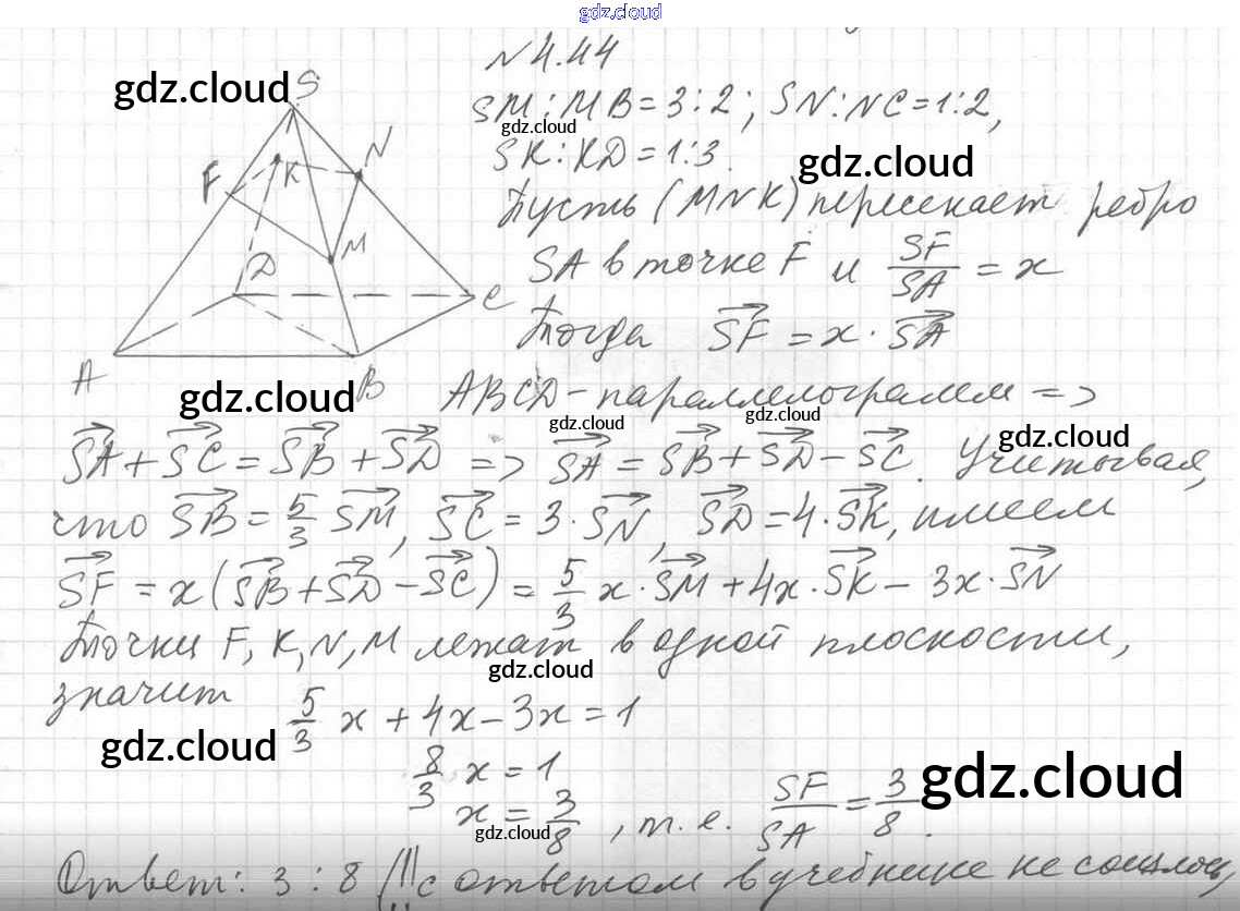 Ответ на задание 4.44 Учебник Геометрия  за 11 (одиннадцатый) класс Мерзляк, Номировский, Поляков Алгоритм успеха Углубленный уровень 2019
