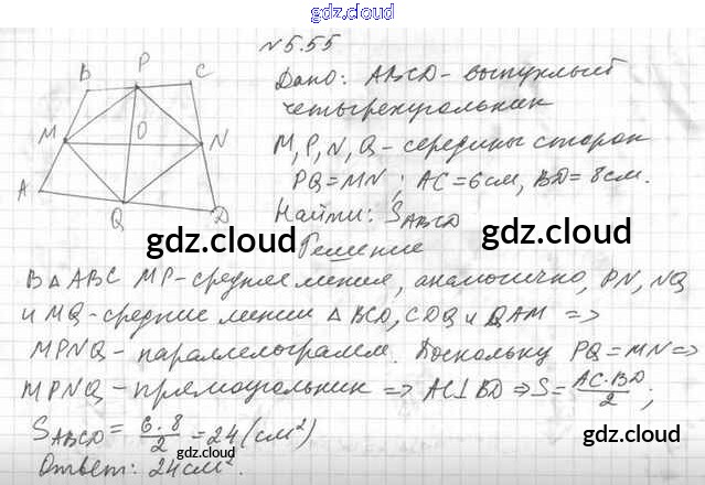 Ответ на задание 5.55 Учебник Геометрия  за 11 (одиннадцатый) класс Мерзляк, Номировский, Поляков Алгоритм успеха Углубленный уровень 2019