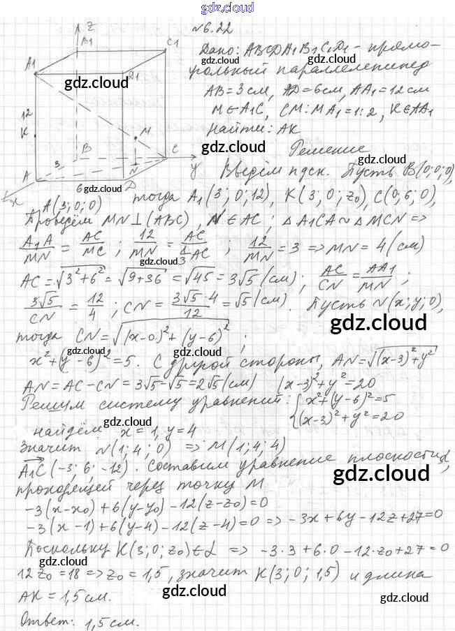 Ответ на задание 6.22 Учебник Геометрия  за 11 (одиннадцатый) класс Мерзляк, Номировский, Поляков Алгоритм успеха Углубленный уровень 2019
