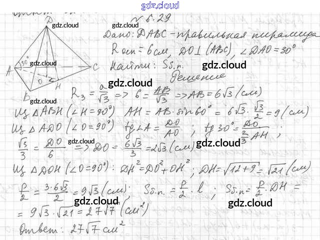 Ответ на задание 6.29 Учебник Геометрия  за 11 (одиннадцатый) класс Мерзляк, Номировский, Поляков Алгоритм успеха Углубленный уровень 2019