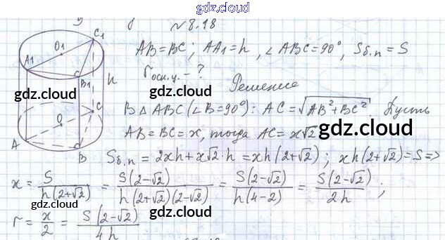 Ответ на задание 8.18 Учебник Геометрия  за 11 (одиннадцатый) класс Мерзляк, Номировский, Поляков Алгоритм успеха Углубленный уровень 2019