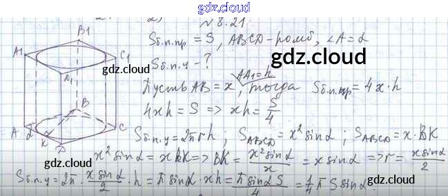 Ответ на задание 8.21 Учебник Геометрия  за 11 (одиннадцатый) класс Мерзляк, Номировский, Поляков Алгоритм успеха Углубленный уровень 2019