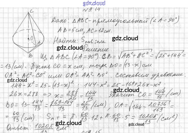 Ответ на задание 9.14 Учебник Геометрия  за 11 (одиннадцатый) класс Мерзляк, Номировский, Поляков Алгоритм успеха Углубленный уровень 2019