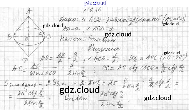Ответ на задание 9.16 Учебник Геометрия  за 11 (одиннадцатый) класс Мерзляк, Номировский, Поляков Алгоритм успеха Углубленный уровень 2019