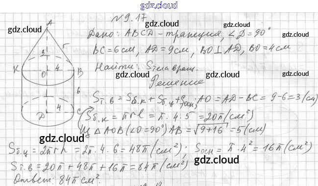 Ответ на задание 9.17 Учебник Геометрия  за 11 (одиннадцатый) класс Мерзляк, Номировский, Поляков Алгоритм успеха Углубленный уровень 2019