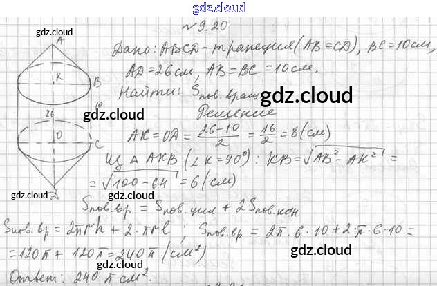Ответ на задание 9.20 Учебник Геометрия  за 11 (одиннадцатый) класс Мерзляк, Номировский, Поляков Алгоритм успеха Углубленный уровень 2019