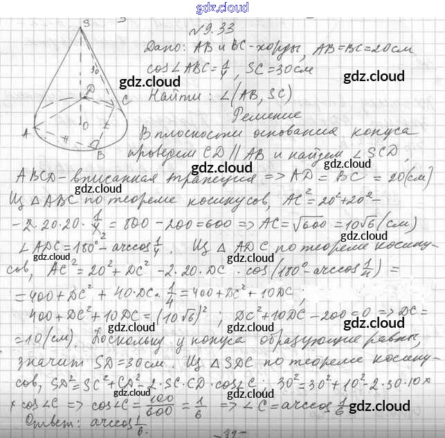 Ответ на задание 9.33 Учебник Геометрия  за 11 (одиннадцатый) класс Мерзляк, Номировский, Поляков Алгоритм успеха Углубленный уровень 2019