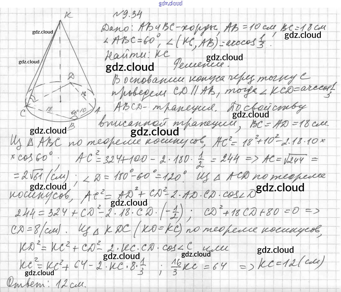 Ответ на задание 9.34 Учебник Геометрия  за 11 (одиннадцатый) класс Мерзляк, Номировский, Поляков Алгоритм успеха Углубленный уровень 2019