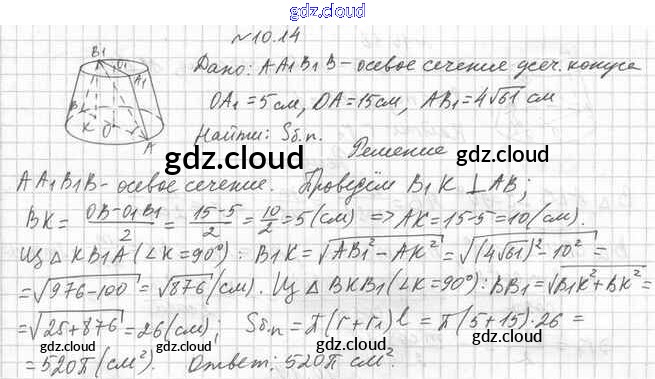 Ответ на задание 10.14 Учебник Геометрия  за 11 (одиннадцатый) класс Мерзляк, Номировский, Поляков Алгоритм успеха Углубленный уровень 2019