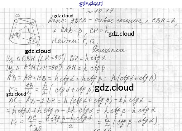 Ответ на задание 10.19 Учебник Геометрия  за 11 (одиннадцатый) класс Мерзляк, Номировский, Поляков Алгоритм успеха Углубленный уровень 2019