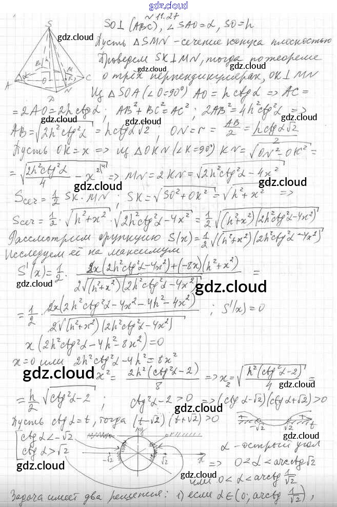Ответ на задание 11.27 Учебник Геометрия  за 11 (одиннадцатый) класс Мерзляк, Номировский, Поляков Алгоритм успеха Углубленный уровень 2019