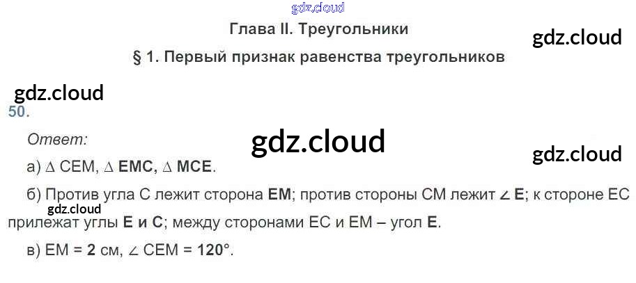 Ответ на задание 50 Рабочая тетрадь Геометрия за 7 (седьмой) класс Атанасян, Бутузов, Глазков 2015 ФГОС онлайн и без номера телефона.