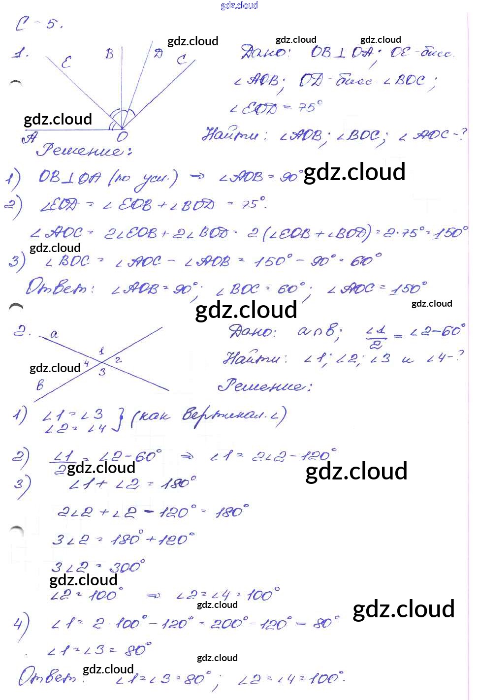 СР-5. Варианты Ответы к Самостоятельным работам по Геометрии 7 класс Дидактические материалы Зив Просвещение