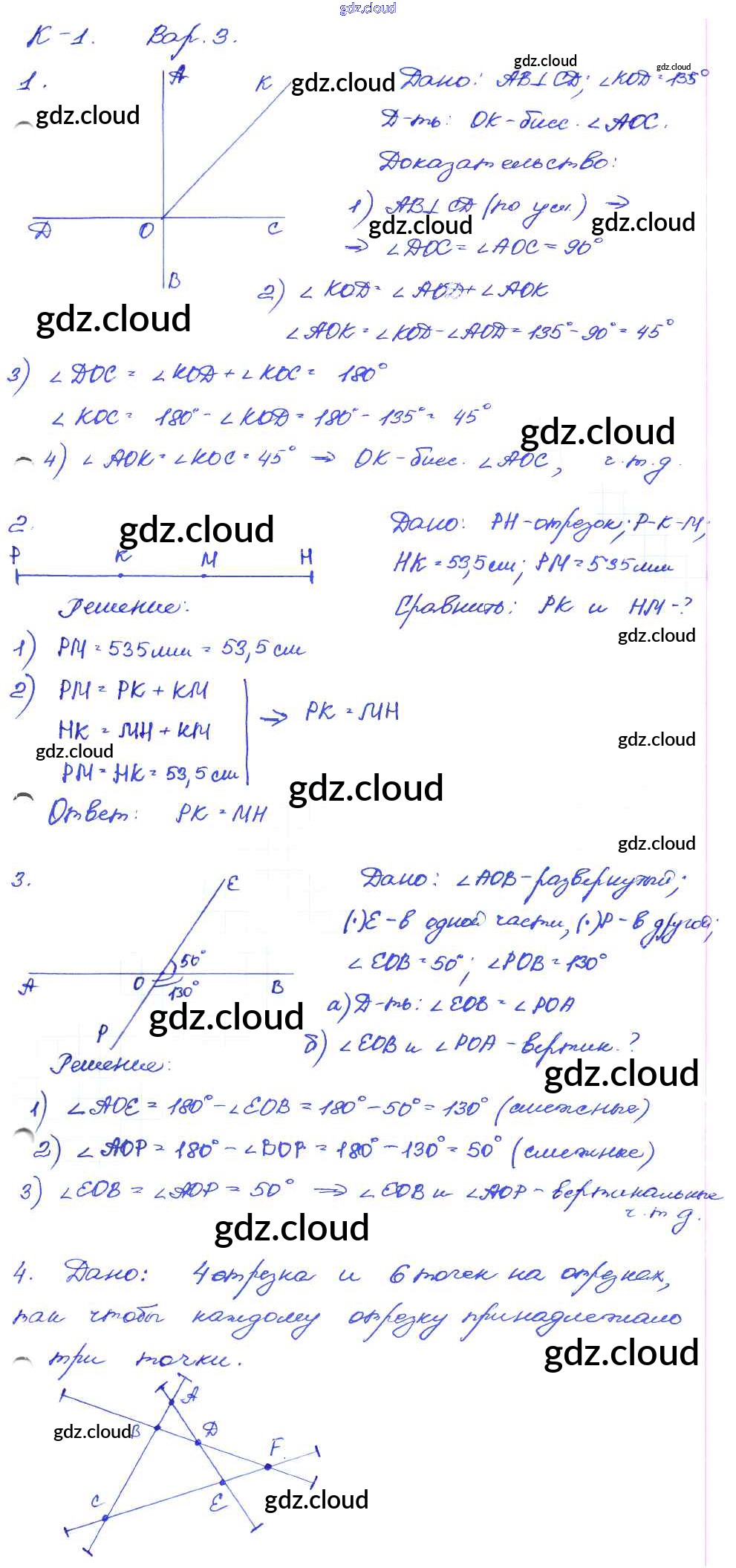 КР-1. Варианты Ответы к Контрольным работам по Геометрии 7 класс Дидактические материалы Зив Просвещение
