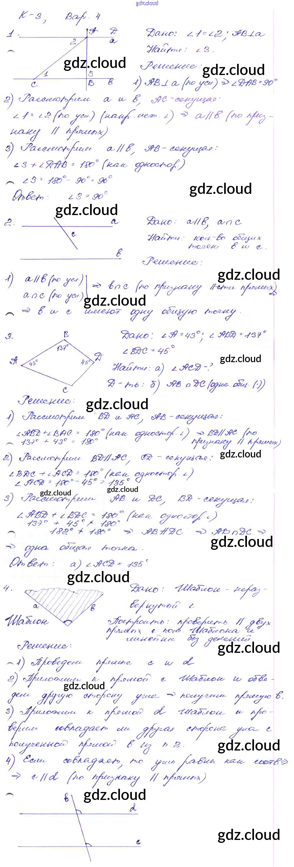 КР-3. Варианты Ответы к Контрольным работам по Геометрии 7 класс Дидактические материалы Зив Просвещение