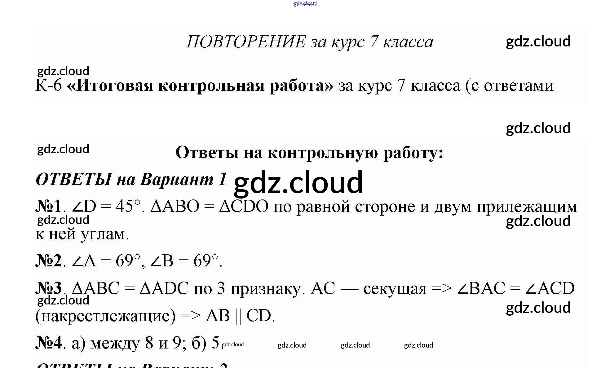 Ответы к итоговым контрольным работам (Варианты) по Геометрии 7 класс Поурочные разработки Гаврилова ВАКО